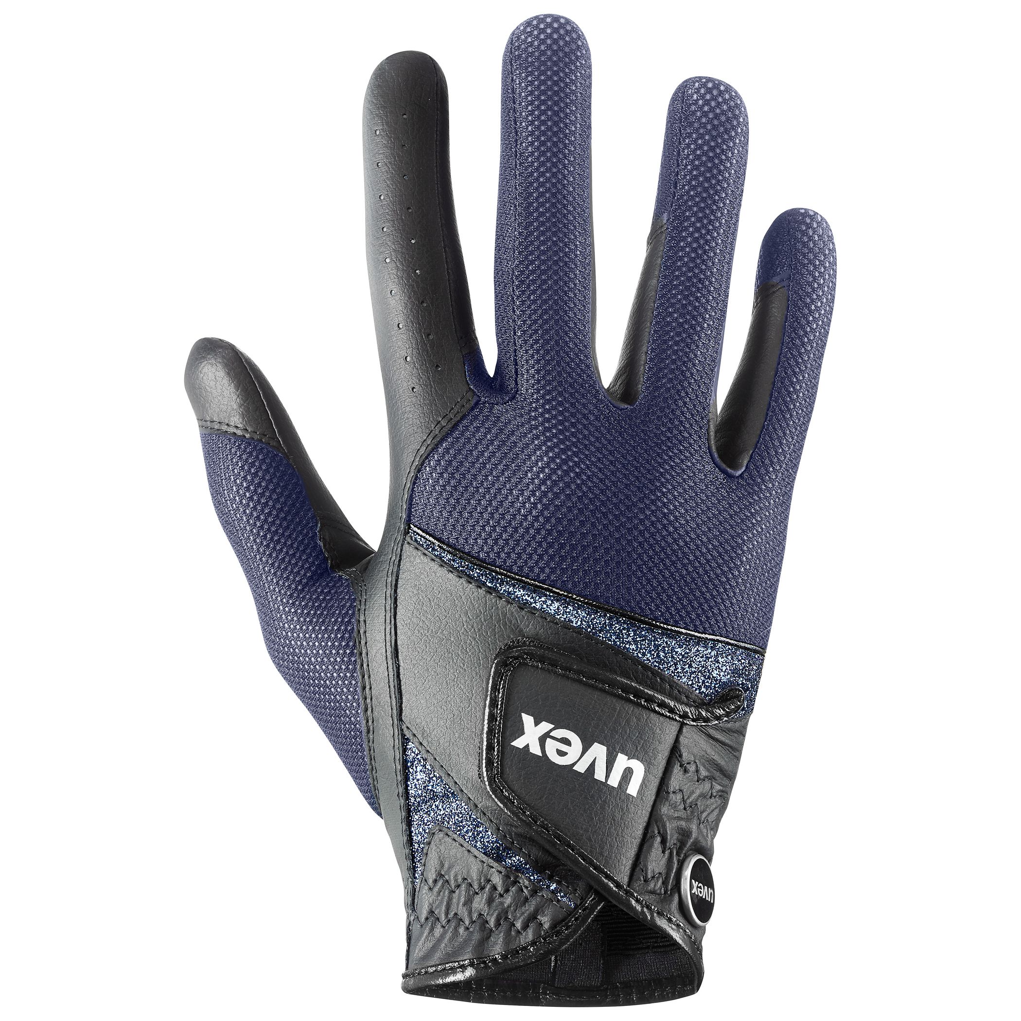 Stil. Grip. Komfort. Edles Feingefühl trifft auf maximalen Halt: uvex sumair glamour. Der hochabriebfeste Handschuh aus rutschfestem, strapazierfähigem PU-Material sorgt für maximalen Grip bei gleichzeitig feinem Zügelgefühl. Atmungsaktives Mesh-Material auf der Rückhand und am Daumen leitet Feuchtigkeit effektiv ab und sorgt für optimale Belüftung. Glänzendes Kunstleder, PU und Mesh, kombiniert mit edlen Glitzerdetails und sportlicher Linienführung, schaffen einen Look, der sowohl Performance als auch Stil vereint. Der uvex sumair glamour: Für alle, die ein gutes Händchen beweisen.