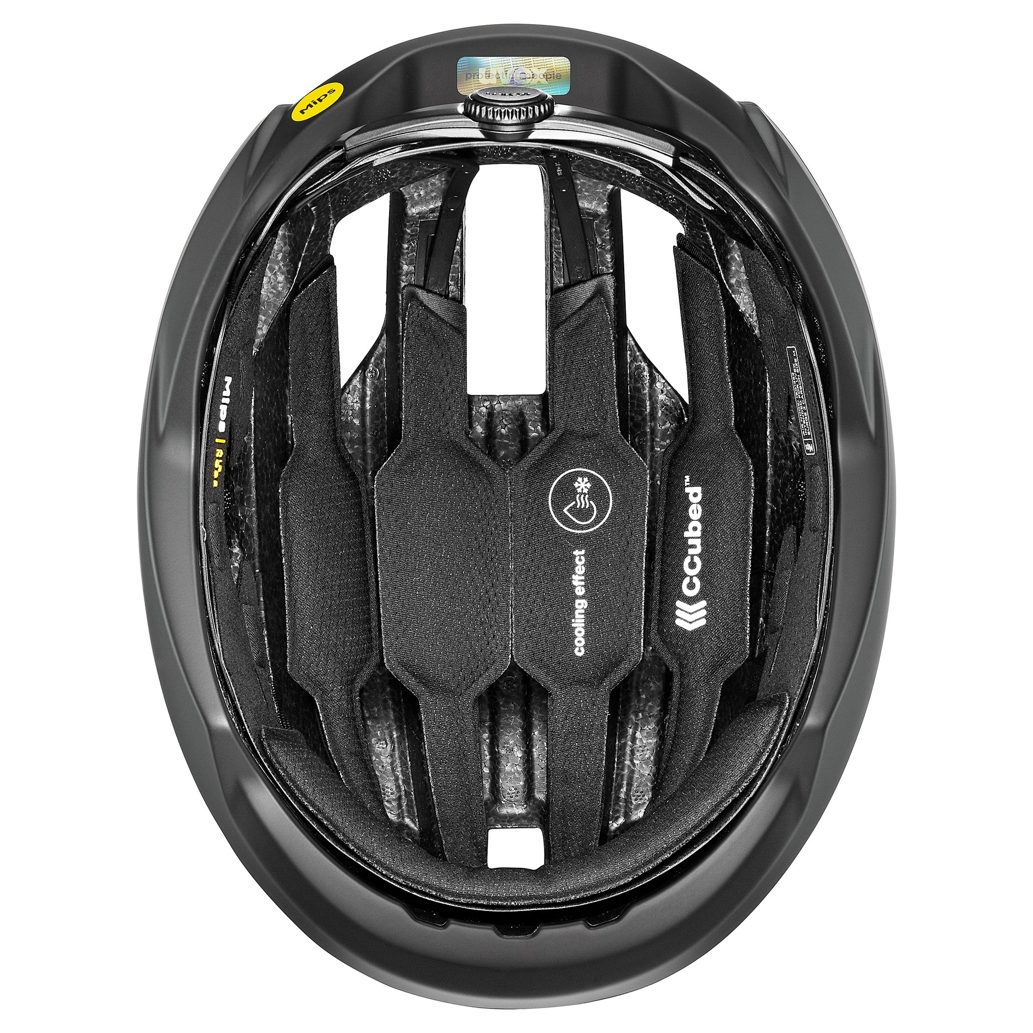 High speed. High tech. High end. The uvex ultimate surge carbon MIPS is the no-compromise solution for modern professional road cycling. 100 years of know-how, racing DNA and precision engineering have all been ploughed into this helmet – made for absolute peak performance. Built around an ultralightweight multi inmould construction with an ultralight carbon outer shell for the highest stability at the lowest weight. The Mips® Air Node safety system adds an extra level of safety for the skull and brain. This involves an ultralight low-friction layer that absorbs the rotational and centrifugal forces of an impact. The helmet’s aerodynamic shape – refined through CFD simulation – noticeably reduces wind drag, while ventilation channels give it effective air circulation. And the fit is adjusted using the uvex 3D IAS Pro system, with precise height and circumference tuning, and ultralight straps with Y-shaped dividers. Inside, the newly developed CCubed® cooling effect lining, created in collaboration with uvex, provides revolutionary levels of moisture management and breathability with a cooling effect – no matter how hot the competition. uvex ultimate surge carbon MIPS – ultimate performance, made for you.