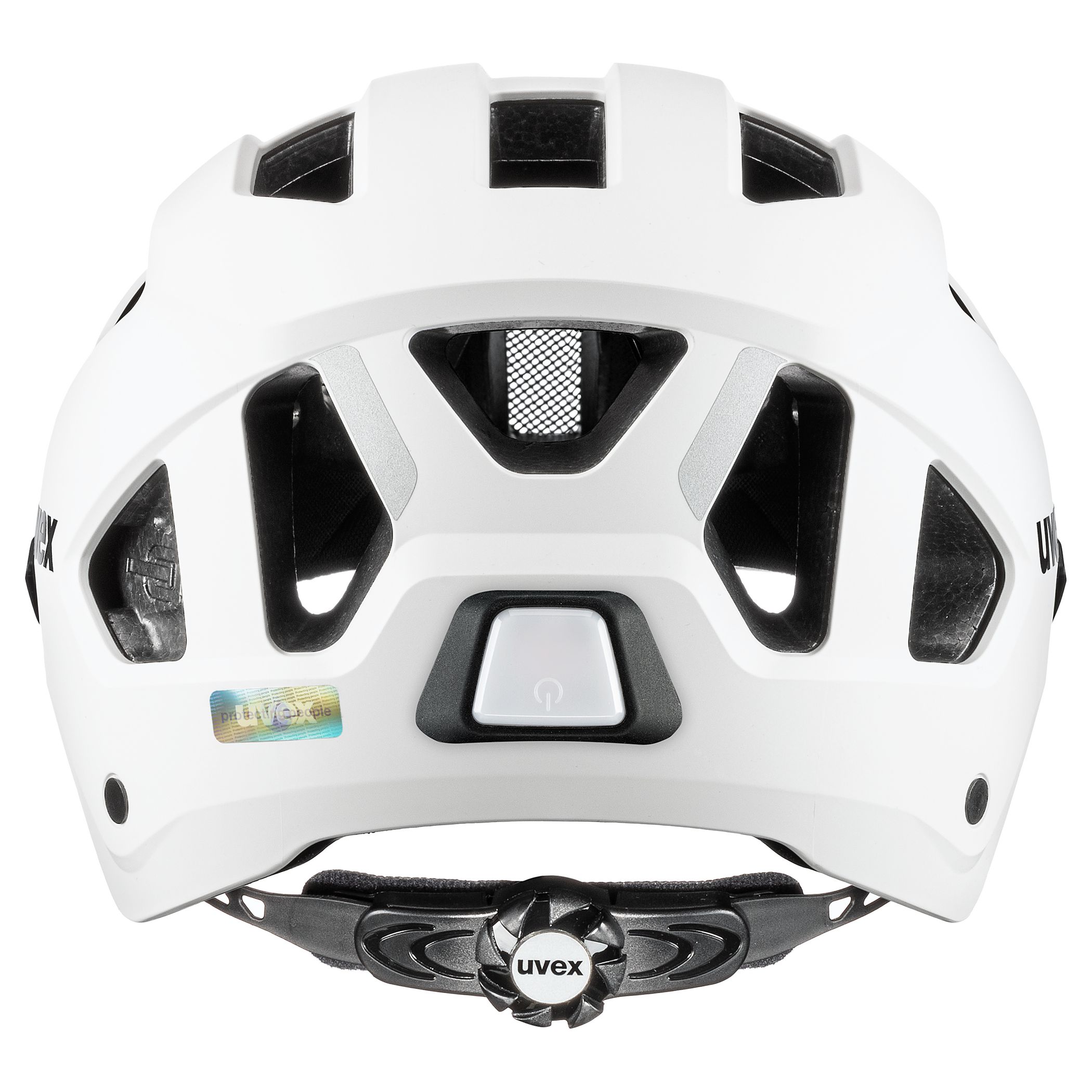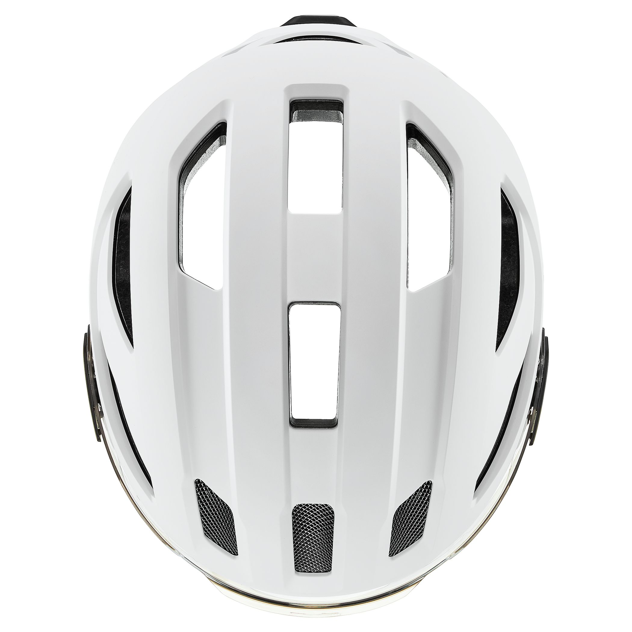 Safe. Visible. Practical. It’s hard to find a better way to protect your head and eyes than the uvex stride visor. This visor helmet for commuting and city cycling is much more than a trendy accessory for an e-bike or hipster bicycle. Its hardshell construction with a plastic outer shell and lightweight EPS liner make it extremely impact resistant. And the lightly tinted, scratchproof visor offers the widest possible field of vision – which is important when negotiating urban traffic. The uvex stride visor can also be worn over prescription eyewear. A new-style bayonet mount means the lens is easily switched for a darker one or a clear one. And there’s a rain cap as an optional extra. Which prevents moisture from working its way between the visor and the helmet. A plug-in LED light at the back gives this commuter helmet added visibility in the dark. Further highlights: the uvex monomatic comfort buckle with one-handed operation. And there’s a docking slot for a lightweight Hiplok Z LOK security tie.